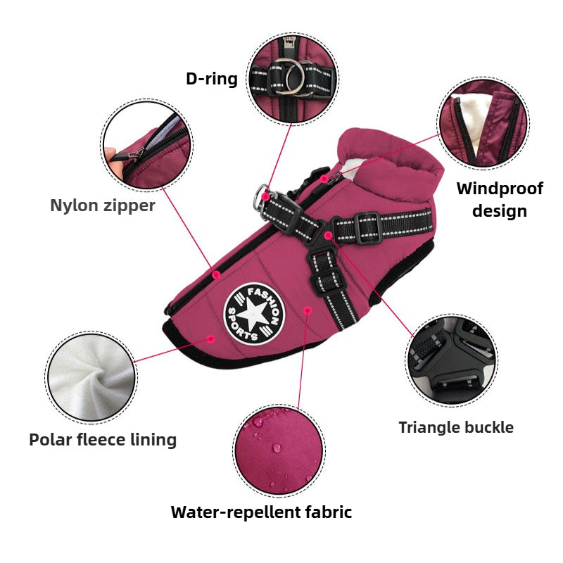 Veste pour chien grande taille, imperméable, chaude et anti-traction