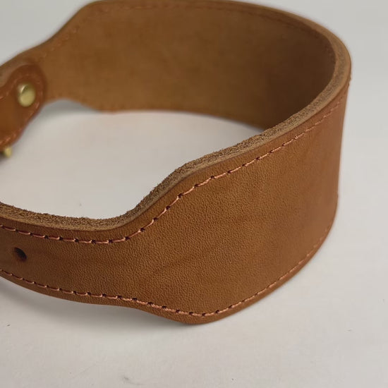 This wide greyhound collar is made from one piece of thick full-grain leather (4.5mm), offering strength and comfort without bulk.